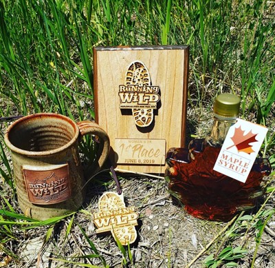 Beautiful bottles of Maple Syrup tapped from Maplewood State Park are awarded for top overall male & female 7K.