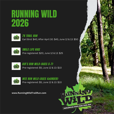 Join us for the FOUREENTH annual Running Wild 7K Trail Run and 1mile LIFE Hike on Saturday, June 13, 2026 at Maplewood State Park! Proceeds benefit Health Resources of Fergus Falls.